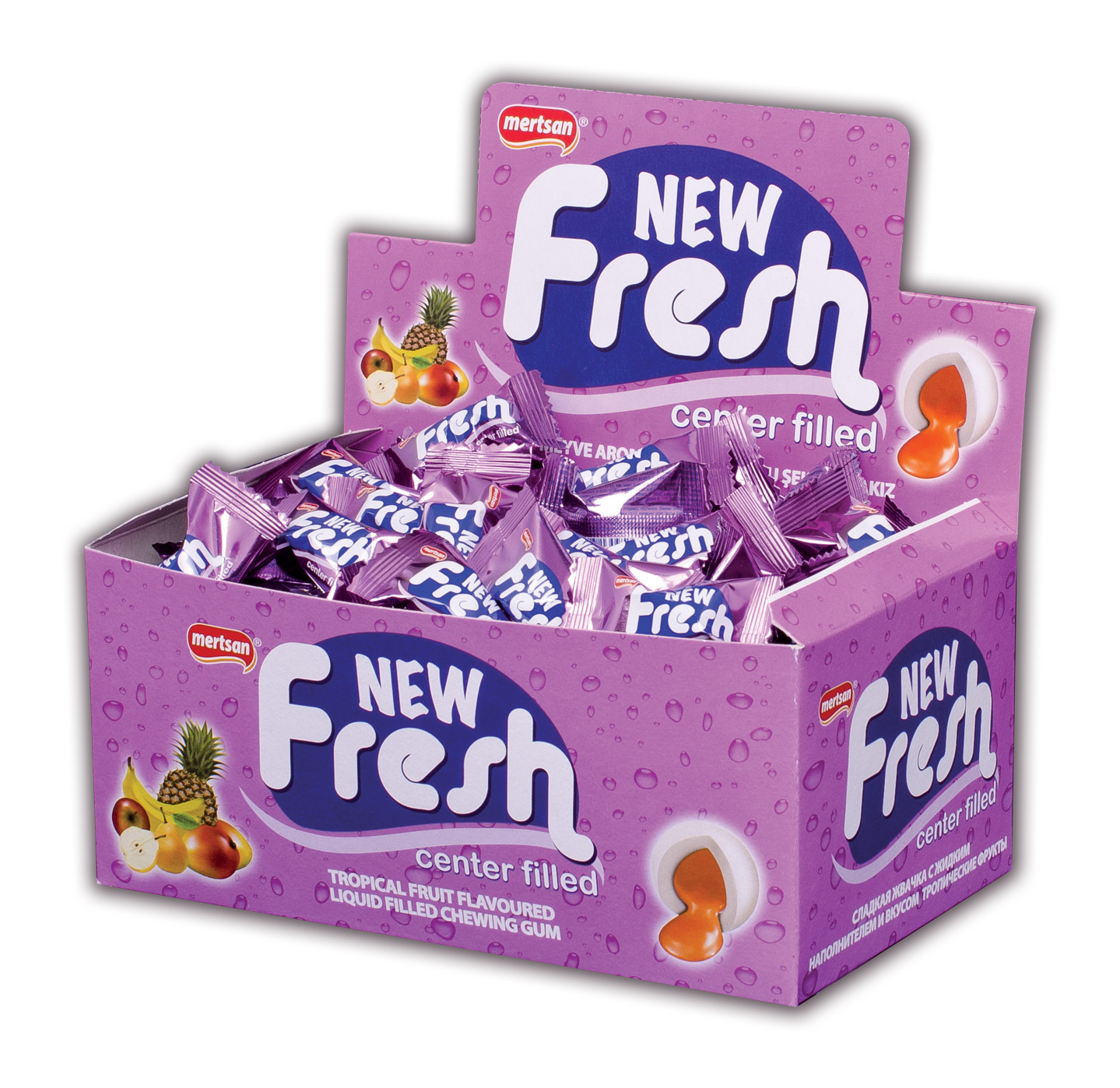 New Fresh Sıvı Dolgulu tropical meyve aromalı Şekerli balonlu Sakız